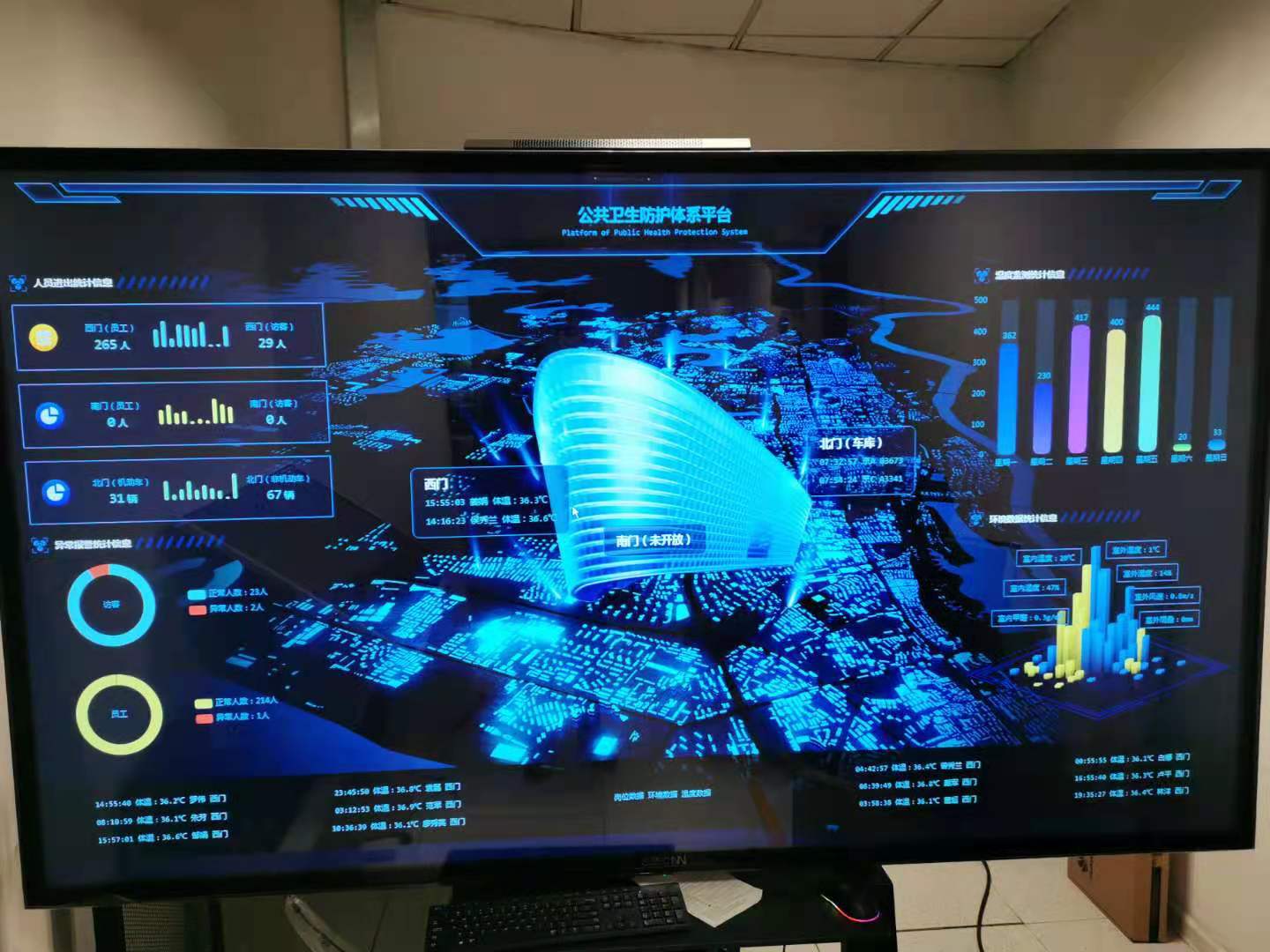 通道大屏显示员工姓名、健康宝状态、人脸照片,测温等信息