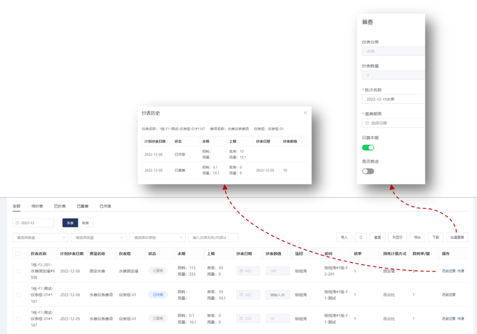也可自动抓取水电表数据后,自动算费,并生成账单,批量查看推送,如下图。